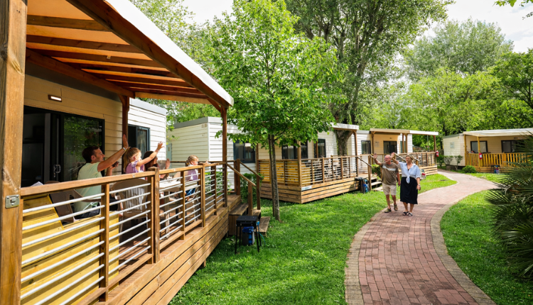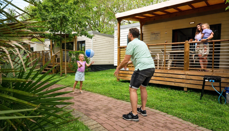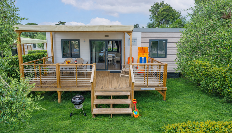 All’esterno, la casa mobile dispone di un’ampia terrazza con copertura (parziale). La terrazza è arredata con mobili da giardino completi e barbecue, permettendoti di godere appieno della vita all’aria aperta in campeggio. In alcuni campeggi è possibile chiudere la terrazza con un cancelletto, soluzione particolarmente pratica per le famiglie con bambini piccoli.