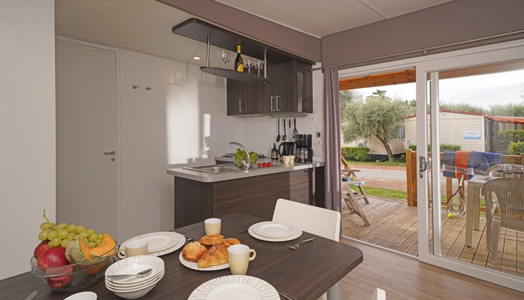 [omschrijving_content] => La spaziosa casa mobile Superior Deluxe è ideale per le famiglie numerose o per le coppie che viaggiano insieme, grazie alla terza camera da letto aggiuntiva. La casa mobile offre un ampio soggiorno e una cucina a pianta aperta. La moderna cucina è completamente attrezzata e comprende un piano cottura a gas a 4 fuochi, un microonde, un frigorifero-congelatore e una macchina per il caffè.