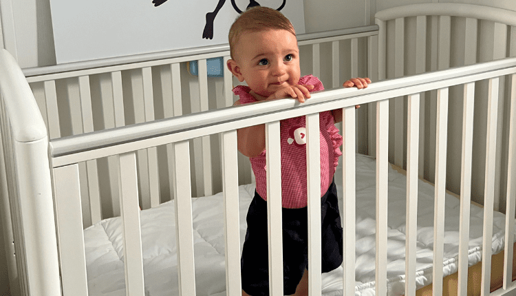 Camera da letto principale con letto matrimoniale e camera per bambini con culla in camera.