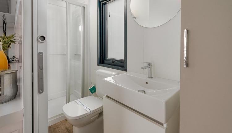 Il Solare Deluxe offre lusso per 5 persone. Questa casa mobile dispone di 2 camere da letto, ampio spazio per riporre gli oggetti e una cucina completamente attrezzata con frigorifero alto e piano cottura a gas a 4 fuochi. Sul davanti si trova una terrazza in legno con tettoia parziale, ideale per godersi le ore più calde o in caso di pioggia.