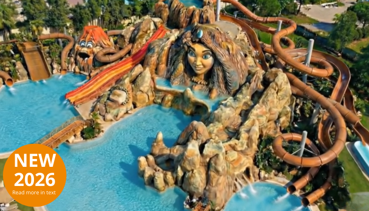 Al Camping Tahiti la nuova piscina è unica! Un paradiso acquatico di ben 1.000 m² di puro divertimento! Ispirata a un misterioso mondo vulcanico, ti sembrerà di trovarti tra imponenti formazioni rocciose, lagune selvagge e sorprendenti scoperte ad ogni angolo.