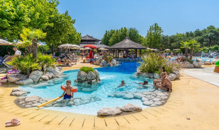 Il Camping Tahiti, sulla costa adriatica, è un campeggio ideale per le famiglie, immerso nel verde e con tre piscine uniche: una piscina olimpionica, una piscina esotica con palme e vasche idromassaggio e una laguna a misura di bambino con rocce e cascate. Un vero paradiso del nuoto per grandi e piccini. Anche fuori dall'acqua non mancano i divertimenti, come il minigolf e un percorso di arrampicata avventuroso.