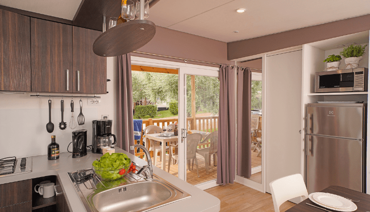 La spaziosa casa mobile Superior Deluxe è ideale per le famiglie numerose o per le coppie che viaggiano insieme, grazie alla terza camera da letto aggiuntiva. La casa mobile offre un ampio soggiorno e una cucina a pianta aperta. La moderna cucina è completamente attrezzata e comprende un piano cottura a gas a 4 fuochi, un microonde, un frigorifero-congelatore e una macchina per il caffè.