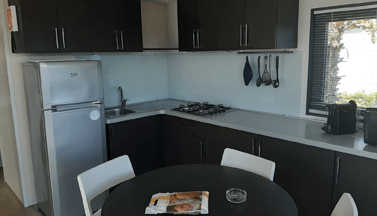 Questa casa mobile appositamente progettata per il Gustocamp è lussuosamente arredata e molto spaziosa (4,0 x 7,60 m), con una zona cucina-soggiorno più ampia e una porta scorrevole in vetro che offre una splendida vista. Ci sono due camere da letto: una con letto matrimoniale e bagno privato e una con due letti singoli e un letto a castello.