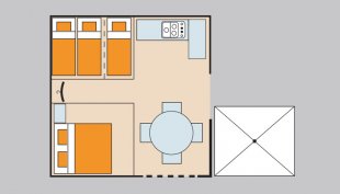 All'esterno trovate un Gazebo con mobili da giardino (1 tavolo, 4 sedie, 2 sedie reclinabili), uno stendi biancheria, e solo nei campeggi che lo permettono un grill. La illuminazione esterna vi permetterà di trascorrere una piacevole serata fuori sotto il gazebo.