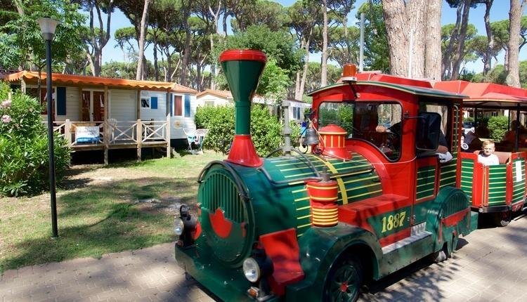 Alloggi ben posizionati all'ombra di pini e animazione per i bambini.
